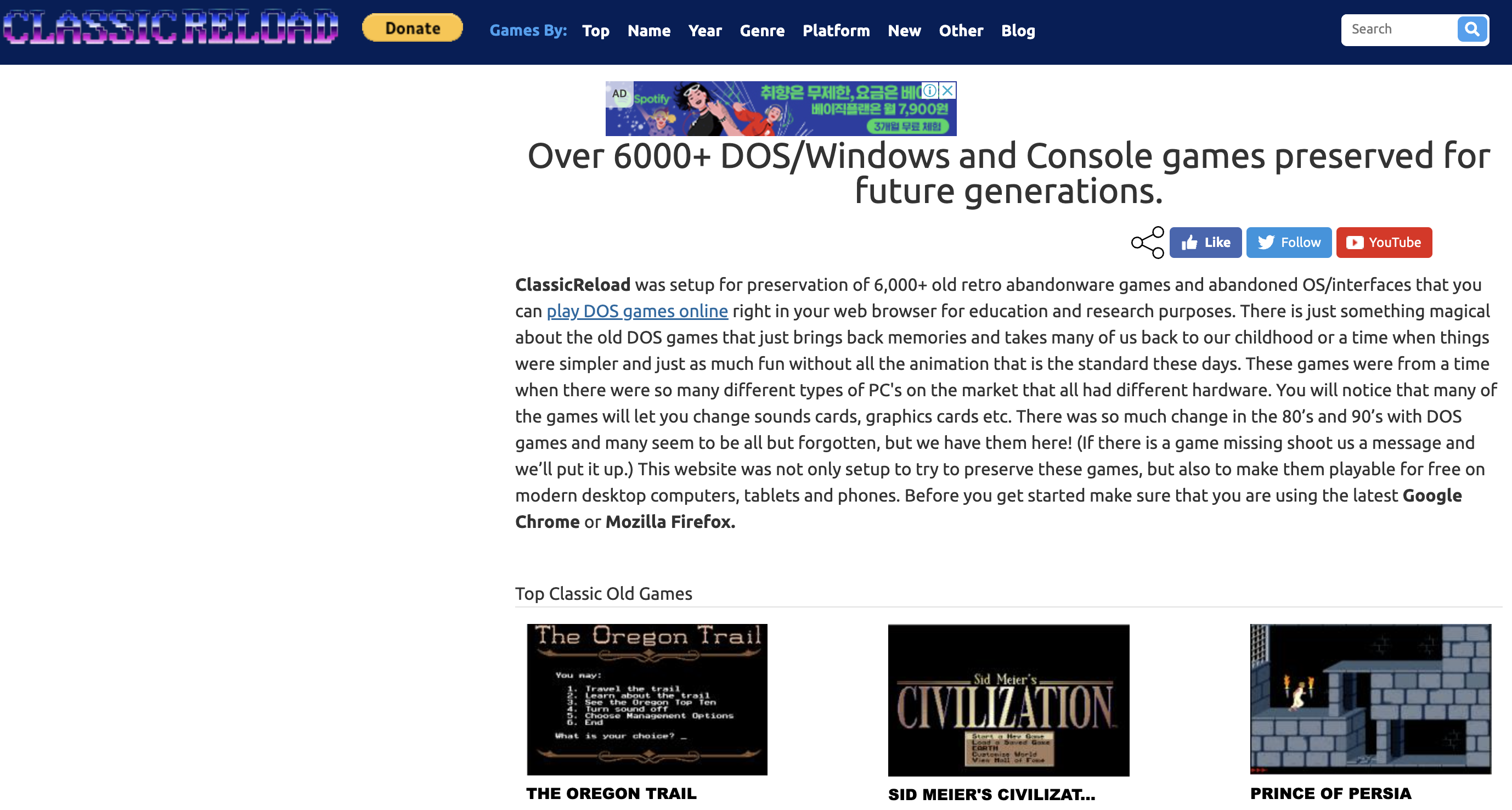 3. 6000개 이상의 Dos/Windows 및 콘솔 게임 'ClassicReload'