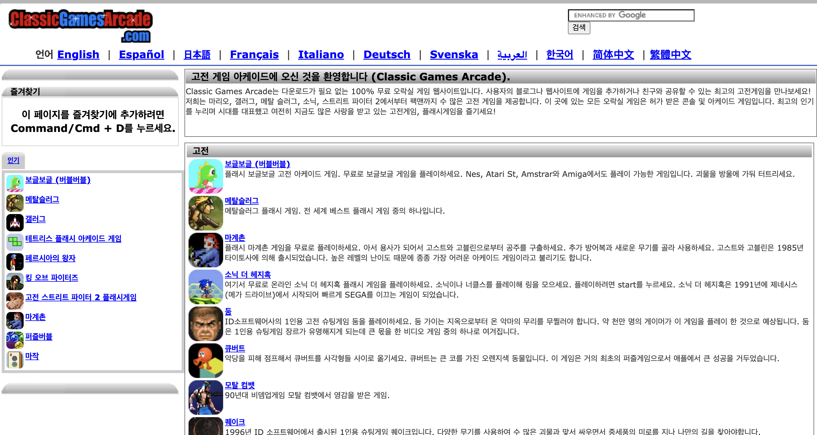 공식홈페이지 : http://www.classicgamesarcade.com/korean/