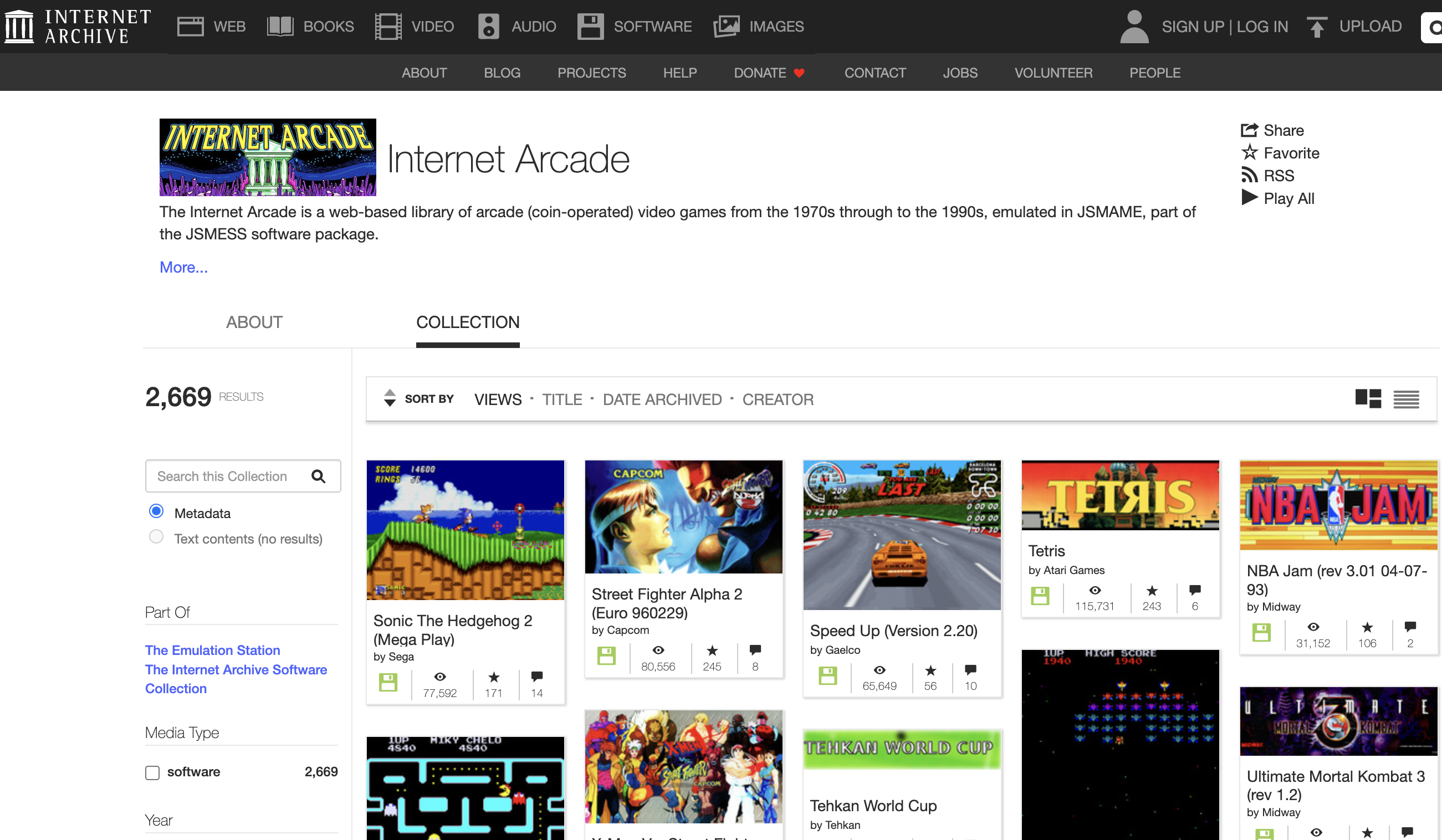 2. MAME 에뮬레이터 게임 'Internet Arcade'