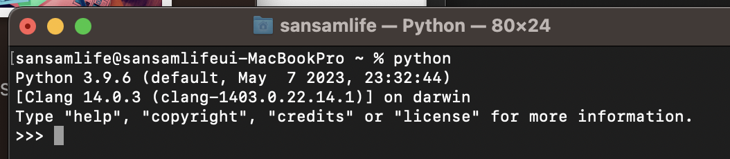 현재 사용하고 있는 맥 운영체제에 python이 설치가 되어 있는지 다음의 명령어를 통해서 확인을 해봅니다.
