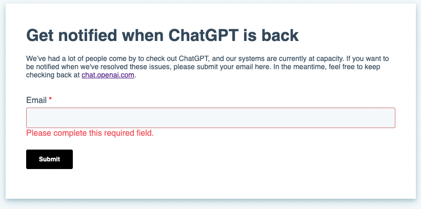 ChatGPT 시스템이 복구가 되면 메일로 알림을 보내준다고 합니다.