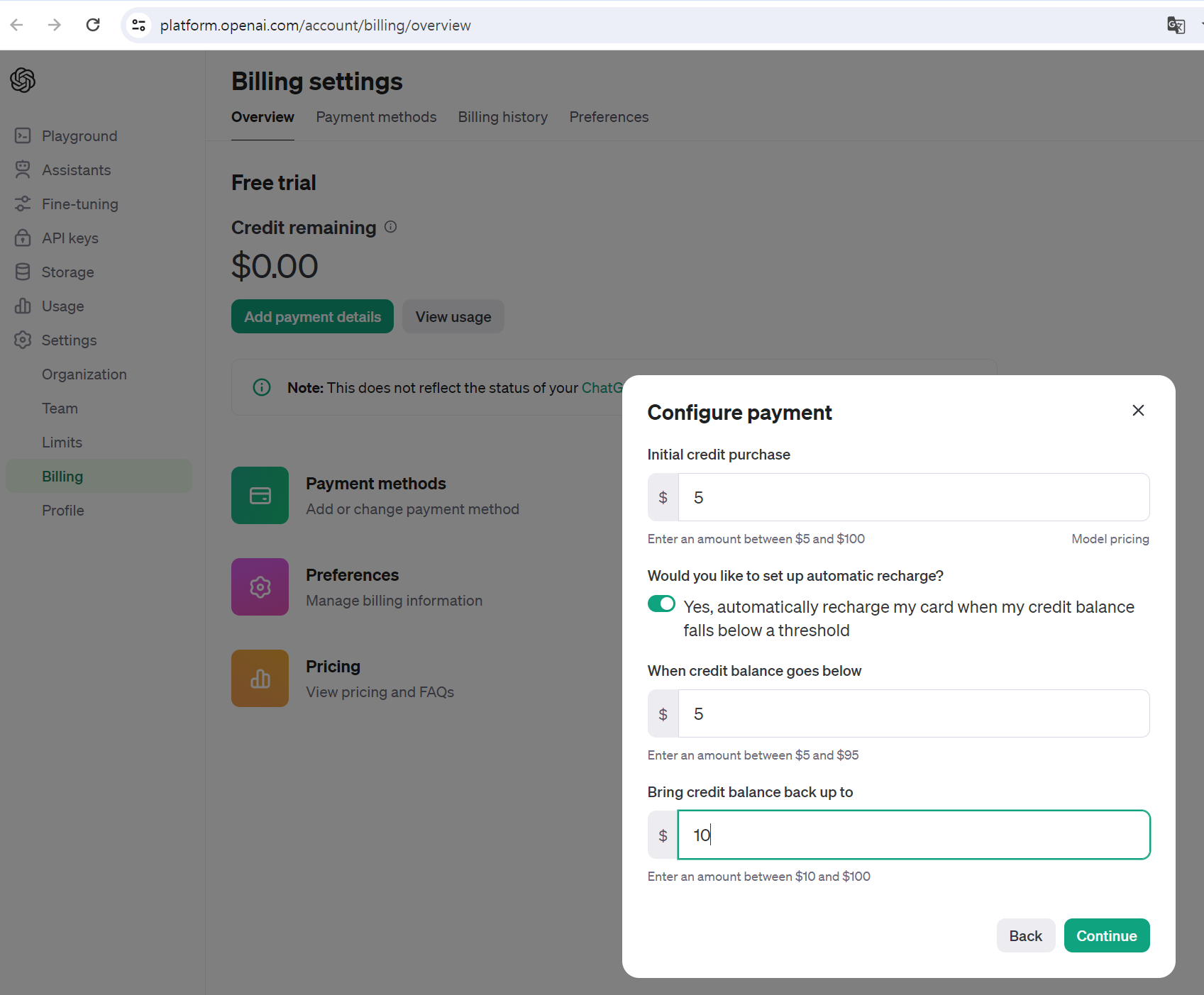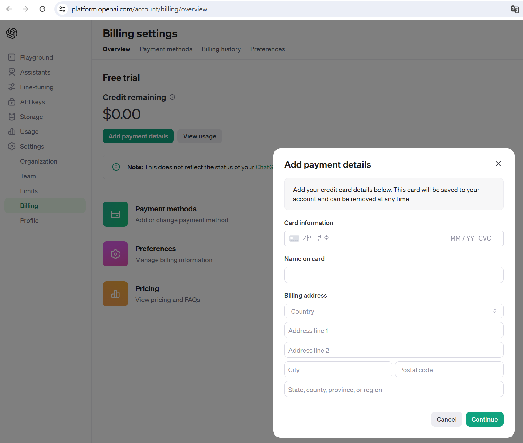 credit card에 대한 정보를 입력하면 문제가 해결되는것 같습니다.