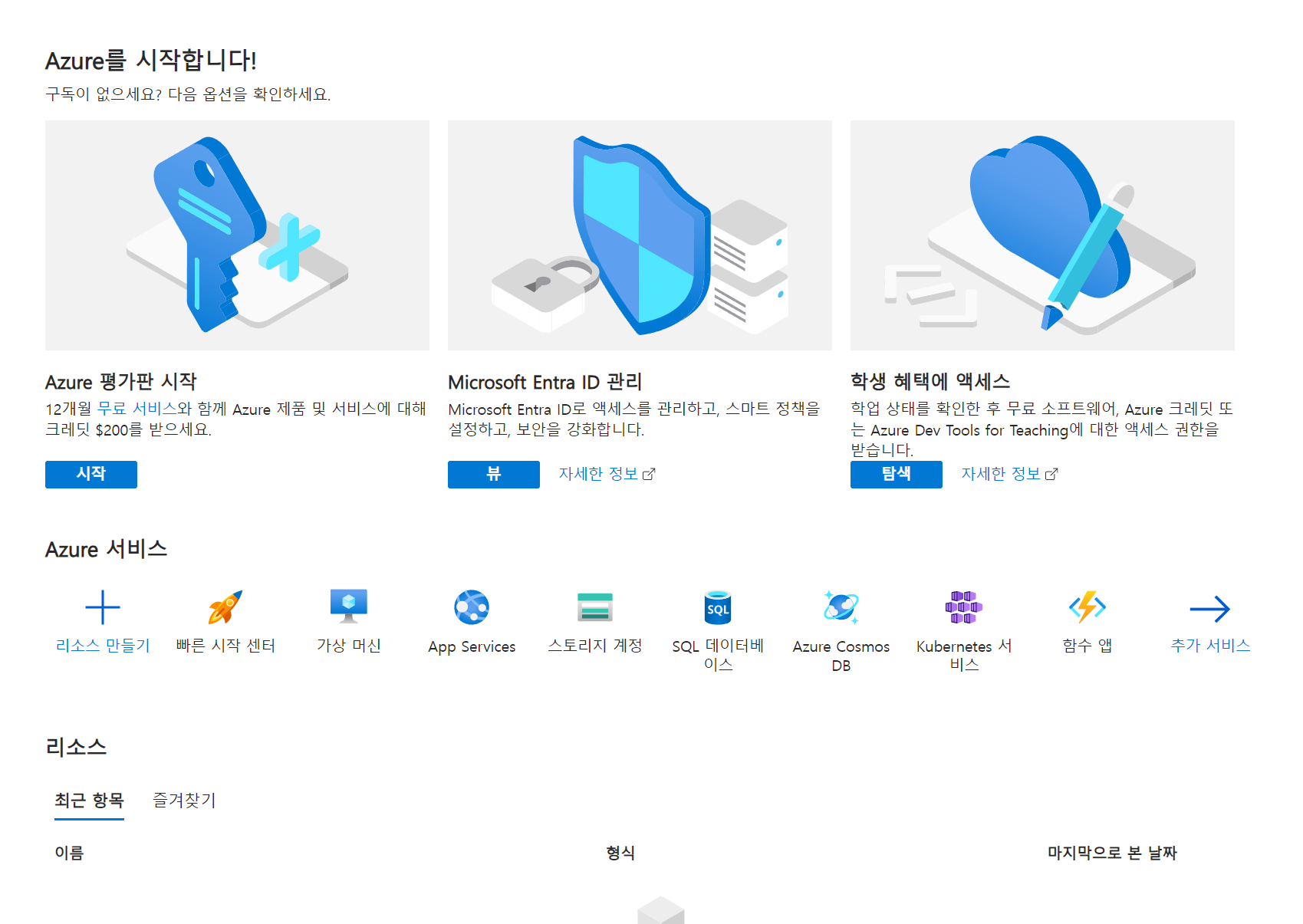 로그인을 한다음에 Azure 구독을 해야합니다.
