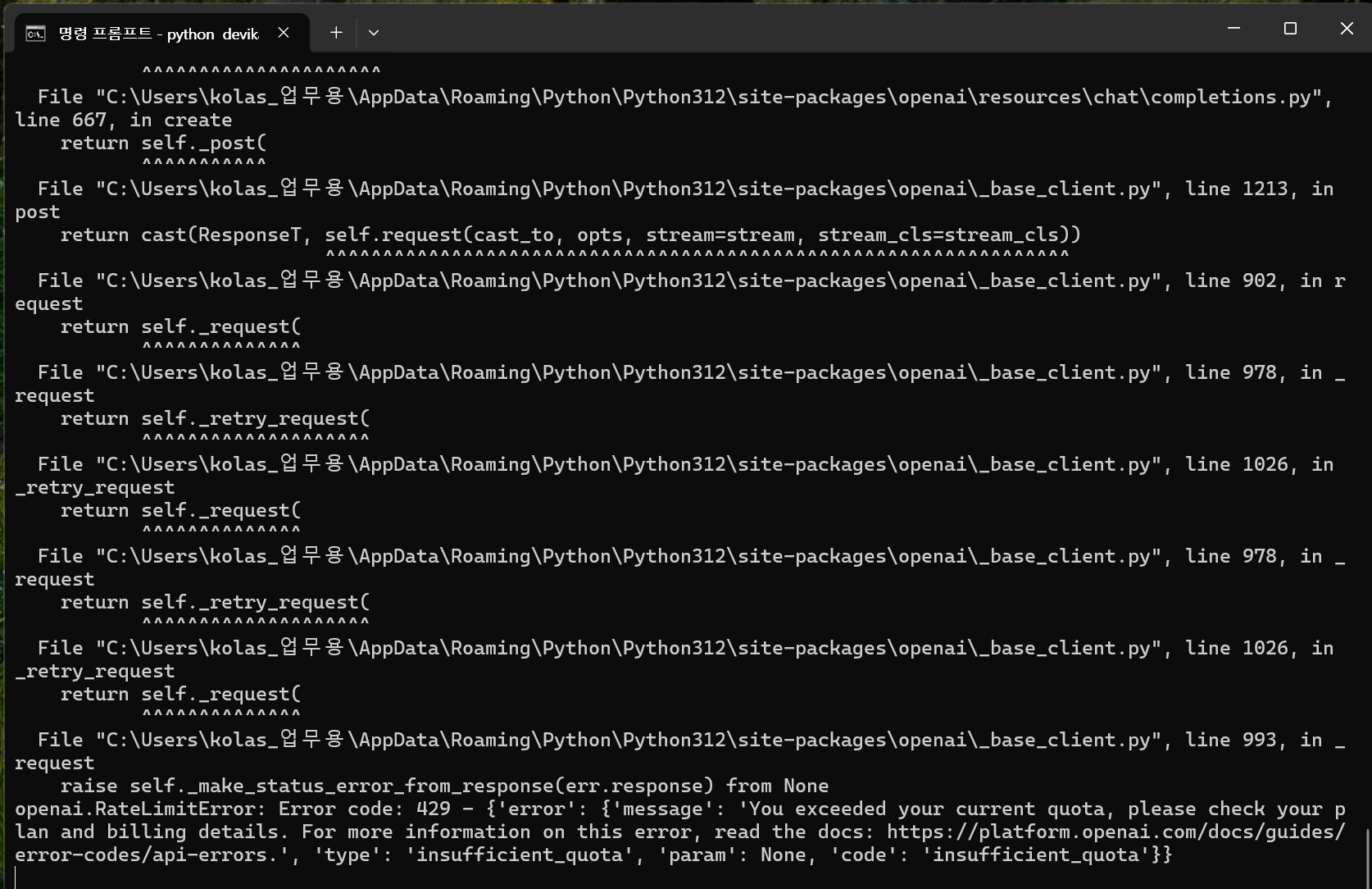 위의 에러 내용은 open ai API 가 문제가 발생한 것 같습니다.
