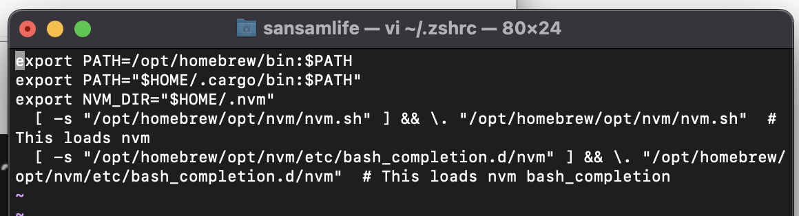 | vi ~/.zshrc export PATH="$HOME/.cargo/bin:$PATH" 추가 입력한 다음에 저장후에 터미널 프로그램을 종료후에 다시 시작해주세요 ![]() |