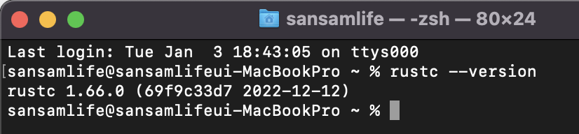 | vi ~/.zshrc export PATH="$HOME/.cargo/bin:$PATH" 추가 입력한 다음에 저장후에 터미널 프로그램을 종료후에 다시 시작해주세요 ![]() |