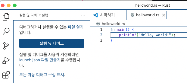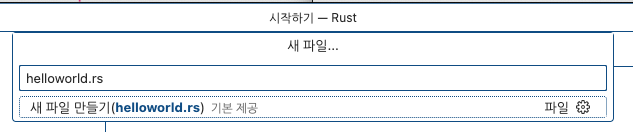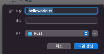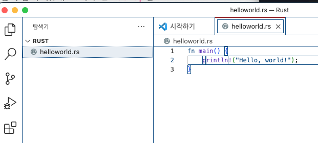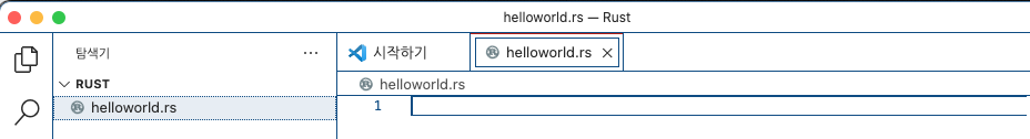 파일명은 'helloworld.rs'를 만들겠습니다.