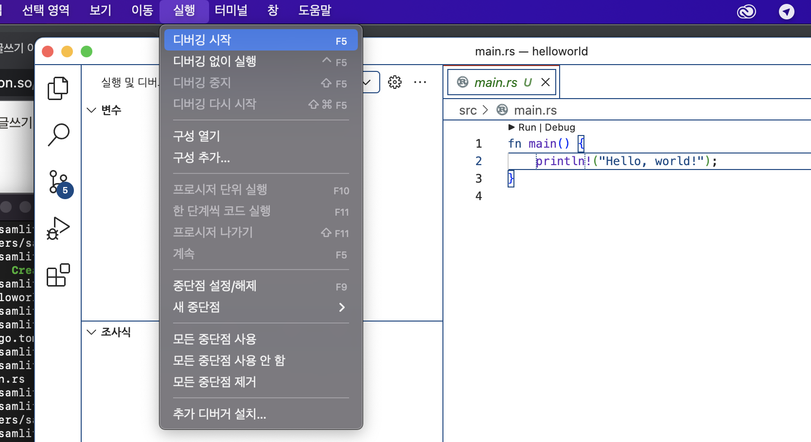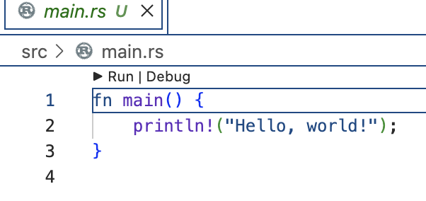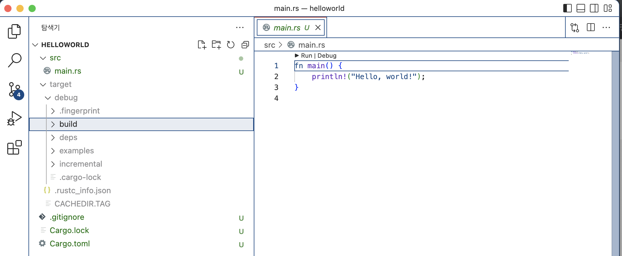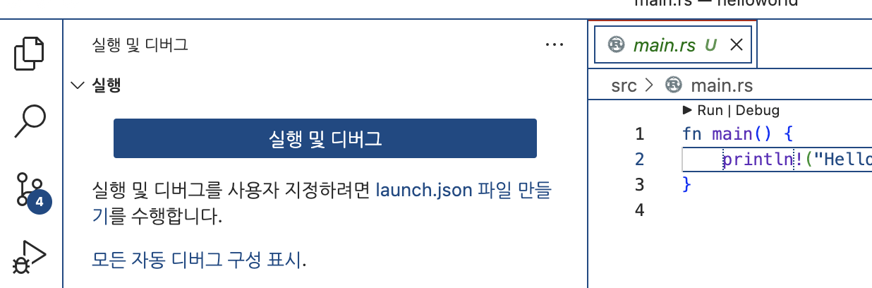 왼쪽 탐색기에서 src/main.rs 파일을 클릭하면