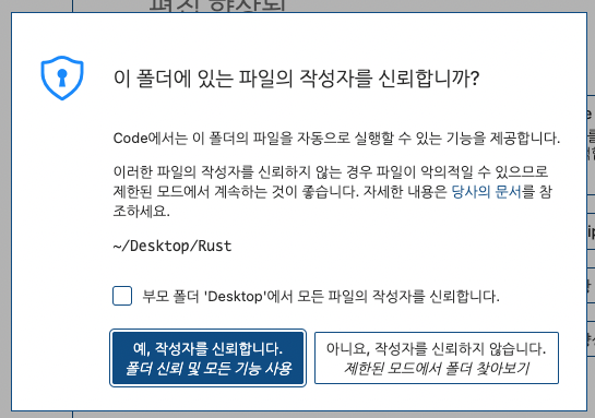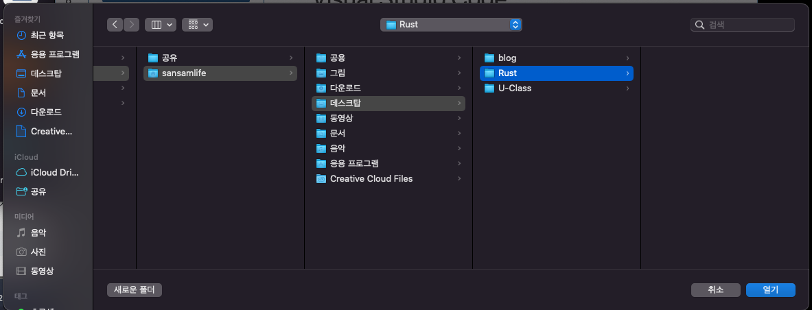 저는 데스크탑에 'Rust'폴더를 생성해서 열기를 하겠습니다.