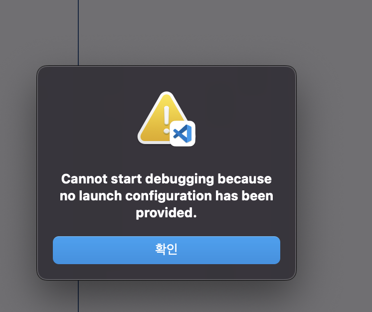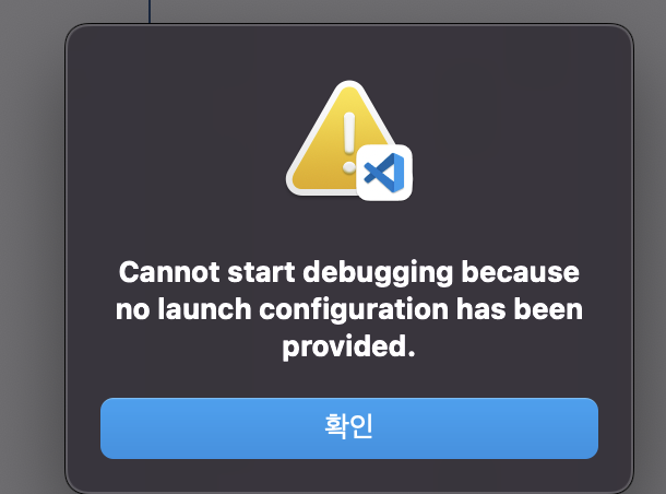 디버깅을 위한 시작 환경이 제공되지 않아서 디버깅을 시작할 수 없다는 에러창이 출력됩니다.