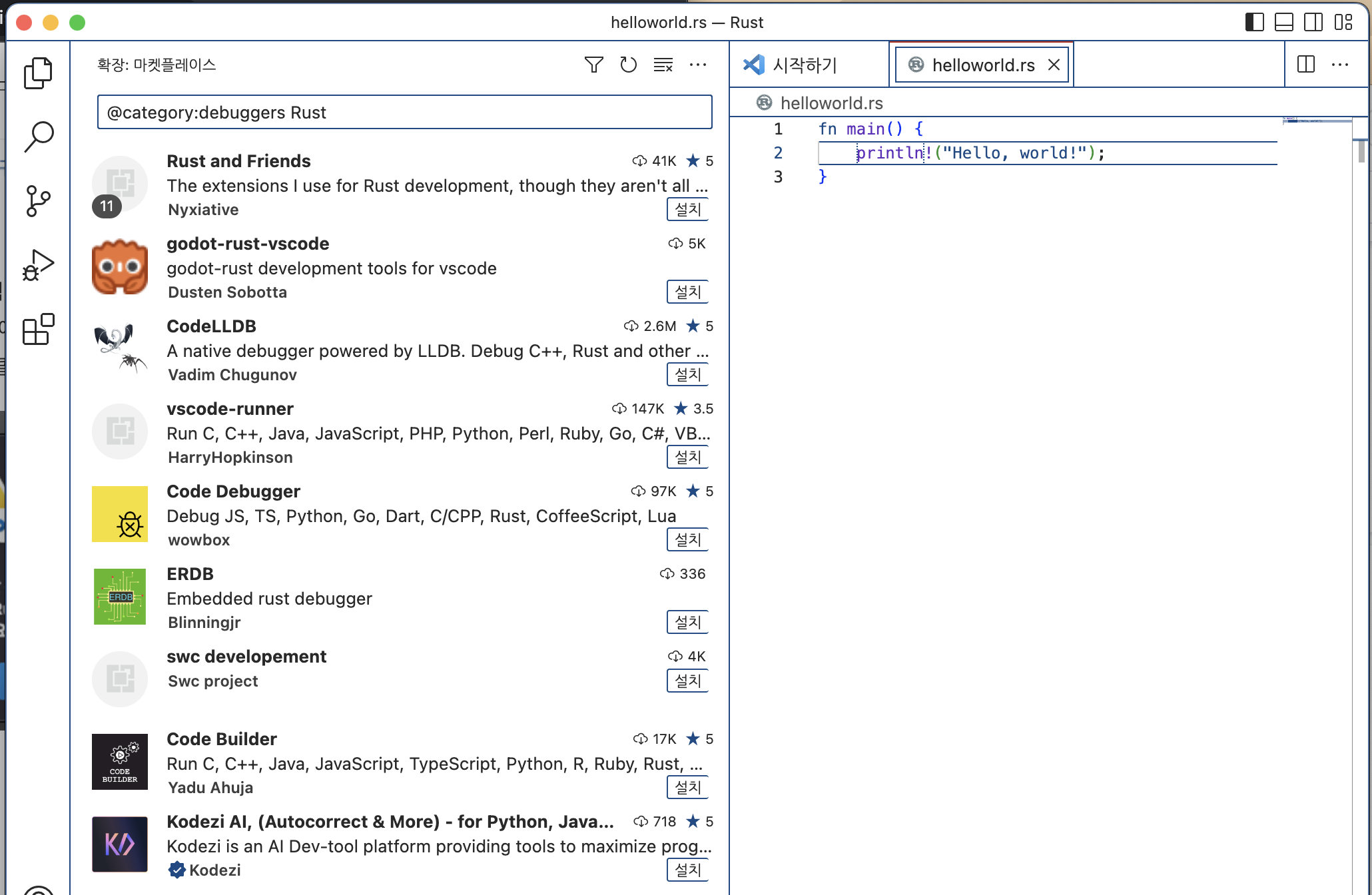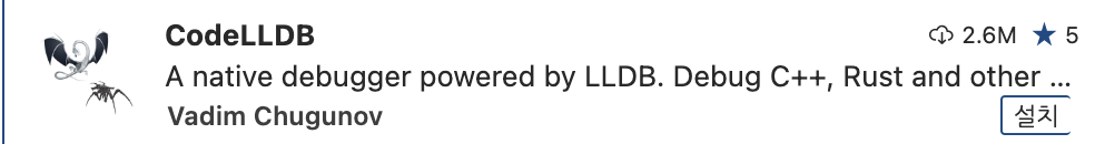 CodeLLDB를 선택해서 '설치'를 하겠습니다.
