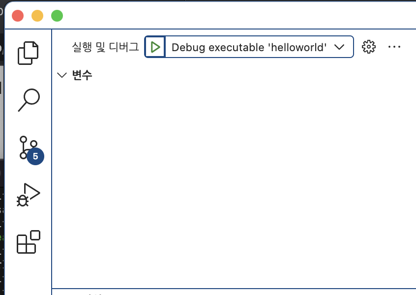 상단에 'Debug executable 'helloworld'라고 보이고