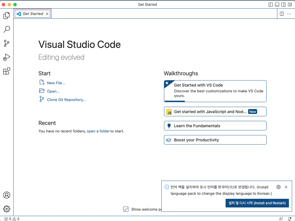 여기까지 Visual Studio Code IDE 설치가 완료되었습니다.