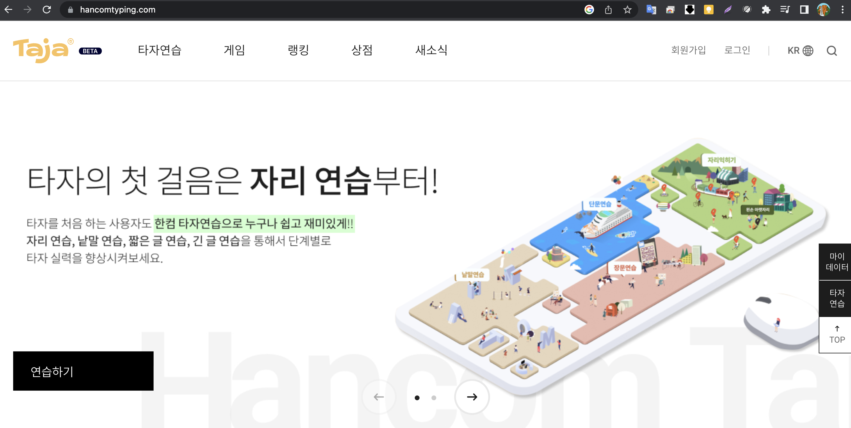 한글 타자 연습을 할 수 있는 홈페이지를 소개합니다.