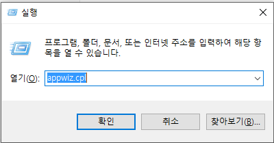 1.' Windows key + R'을 누른다음, 'appwiz.cpl' 입력하고 '확인' 버튼 클릭