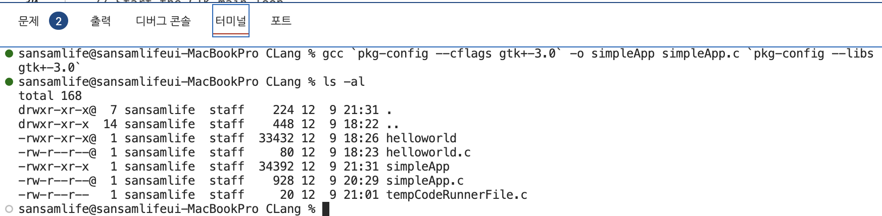 아래와 같이 실행 파일 'simpleApp' 이 만들어진걸 확인할 수 있습니다.