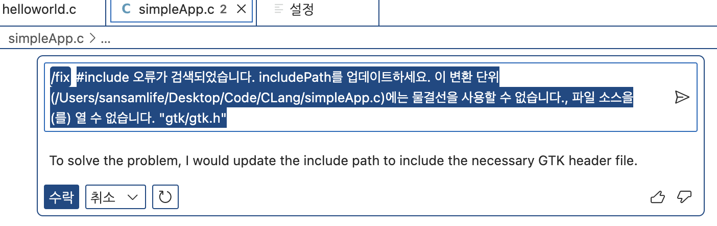 'Copilot을 사용하여 수정'을 시도해보았습니다.