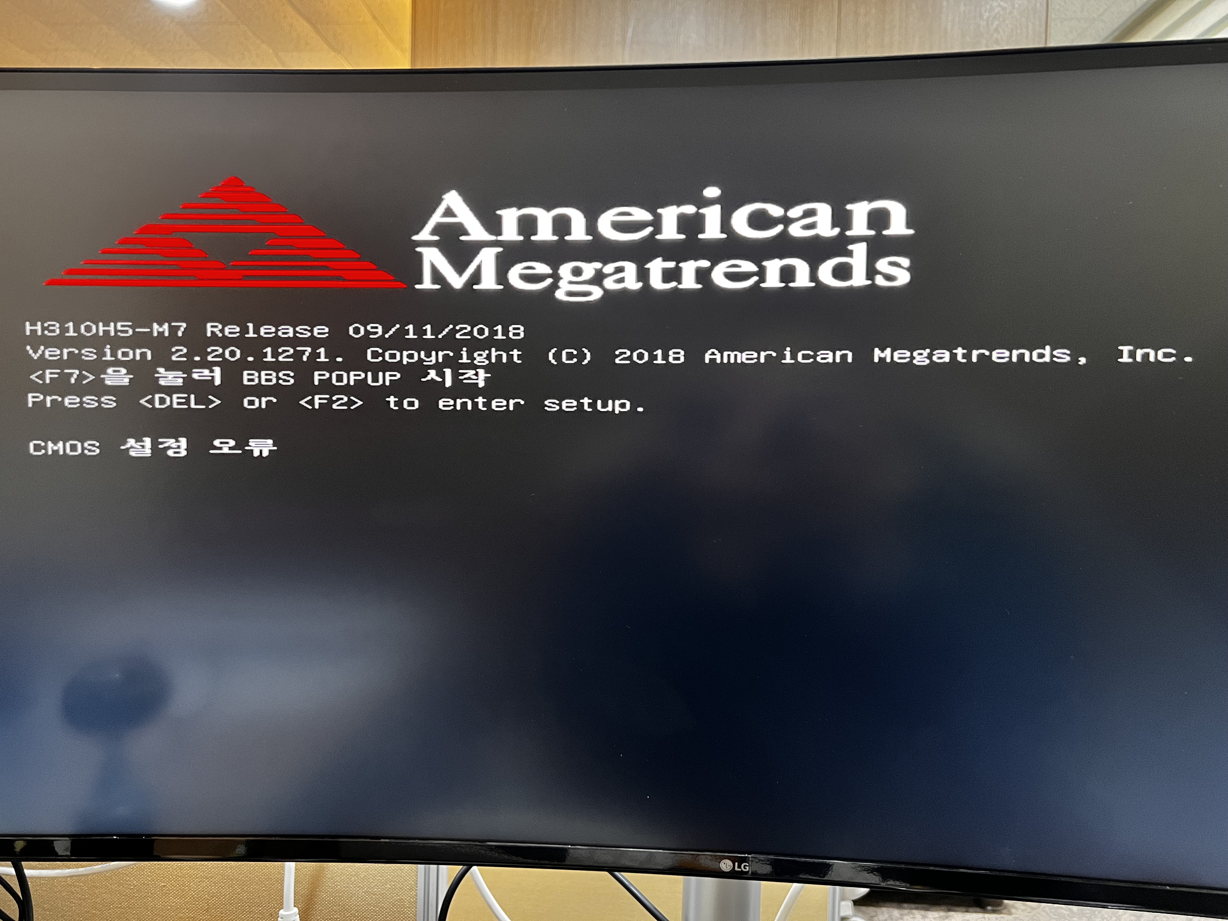 컴퓨터 부팅을 하면 항상 아래와 같이 CMOS 에러가 발생했습니다. 'CMOS 설정 오류'