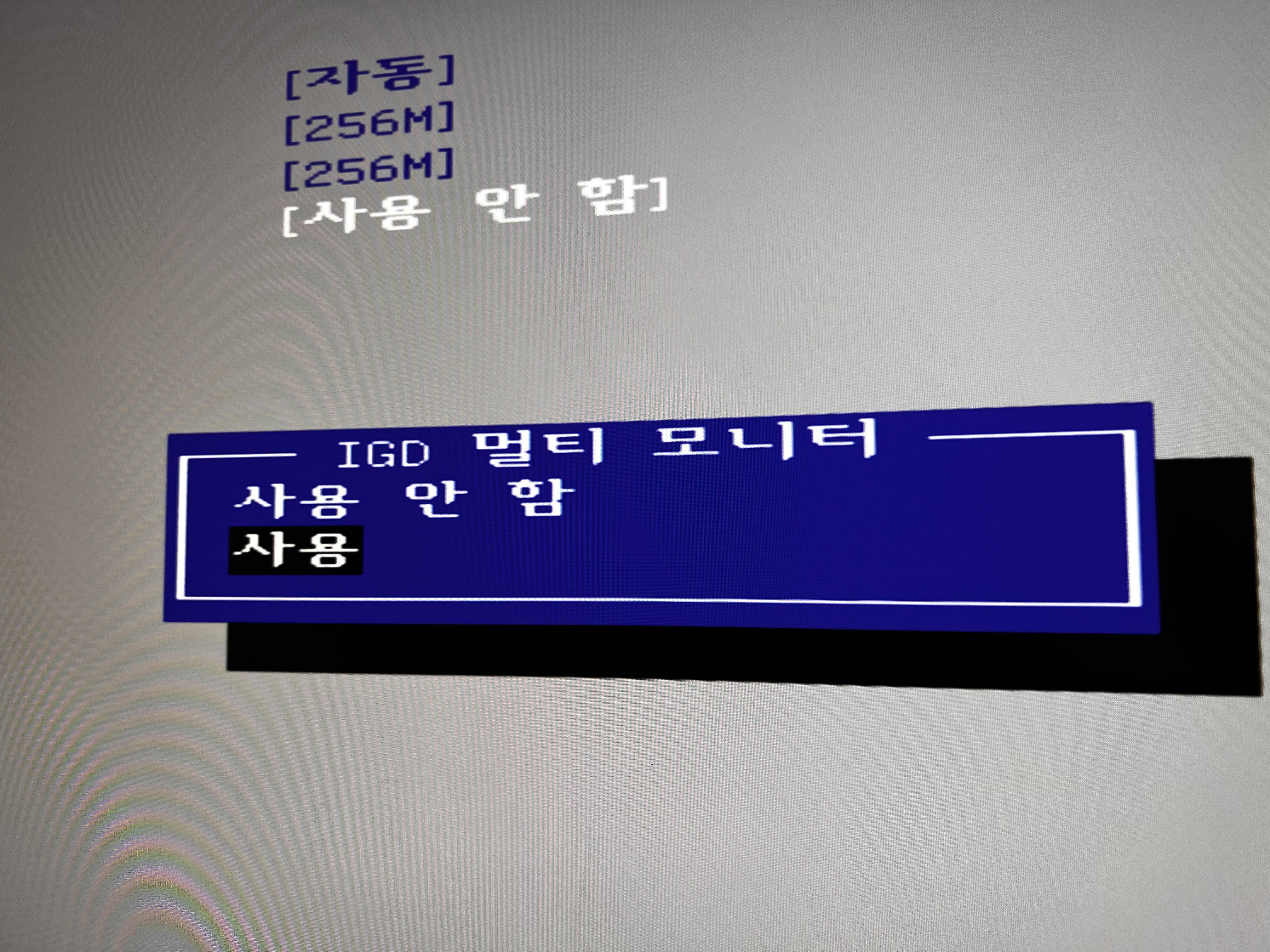 3.칩셋 - North Bridge - IGD 멀티 모니터 에서 '사용안함' 으로 설정되어 있습니다.