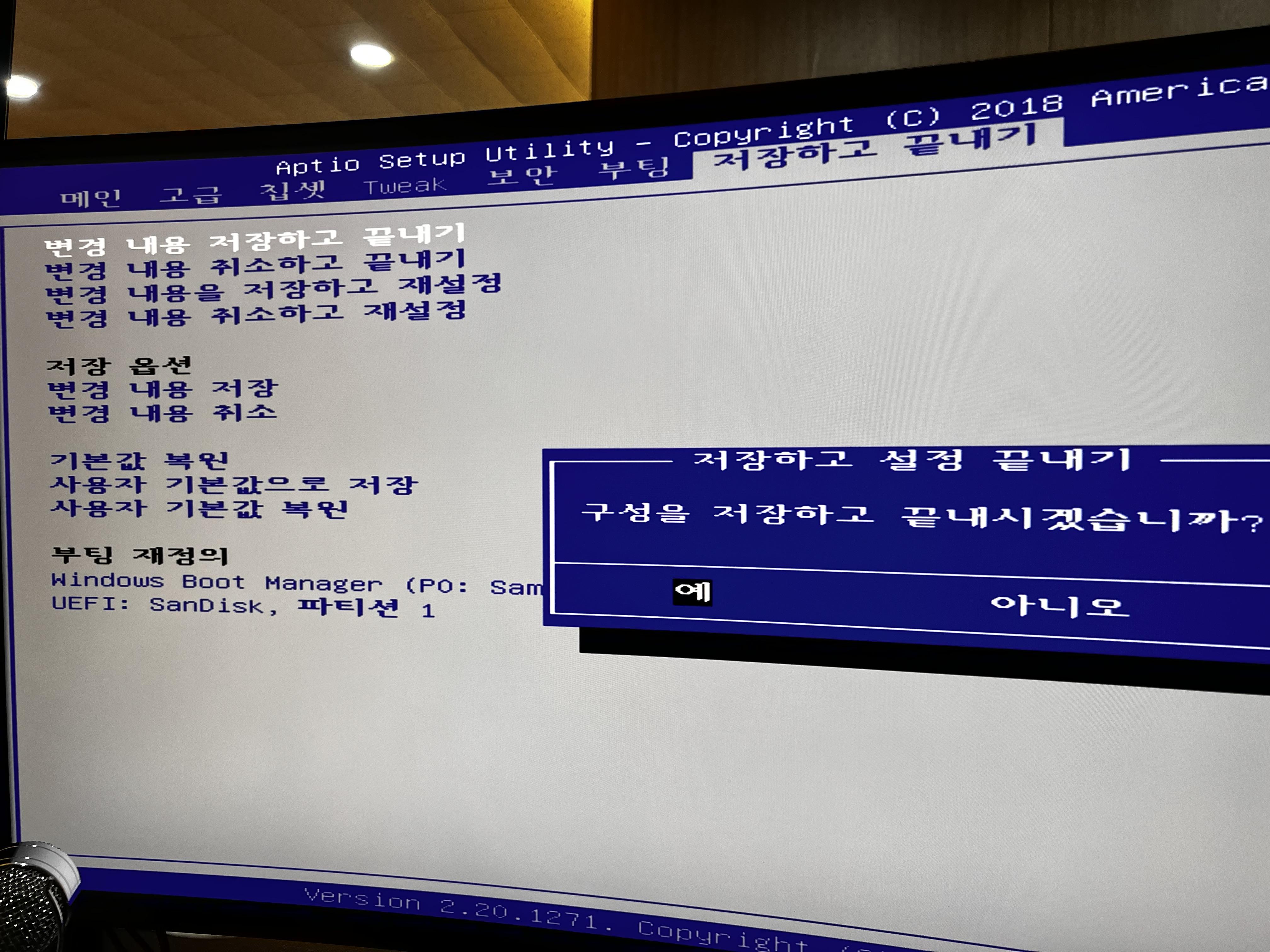 5. 저장하고 끝내기 '예'를 해서 저장하고 재부팅을 하면 해결이 됩니다.