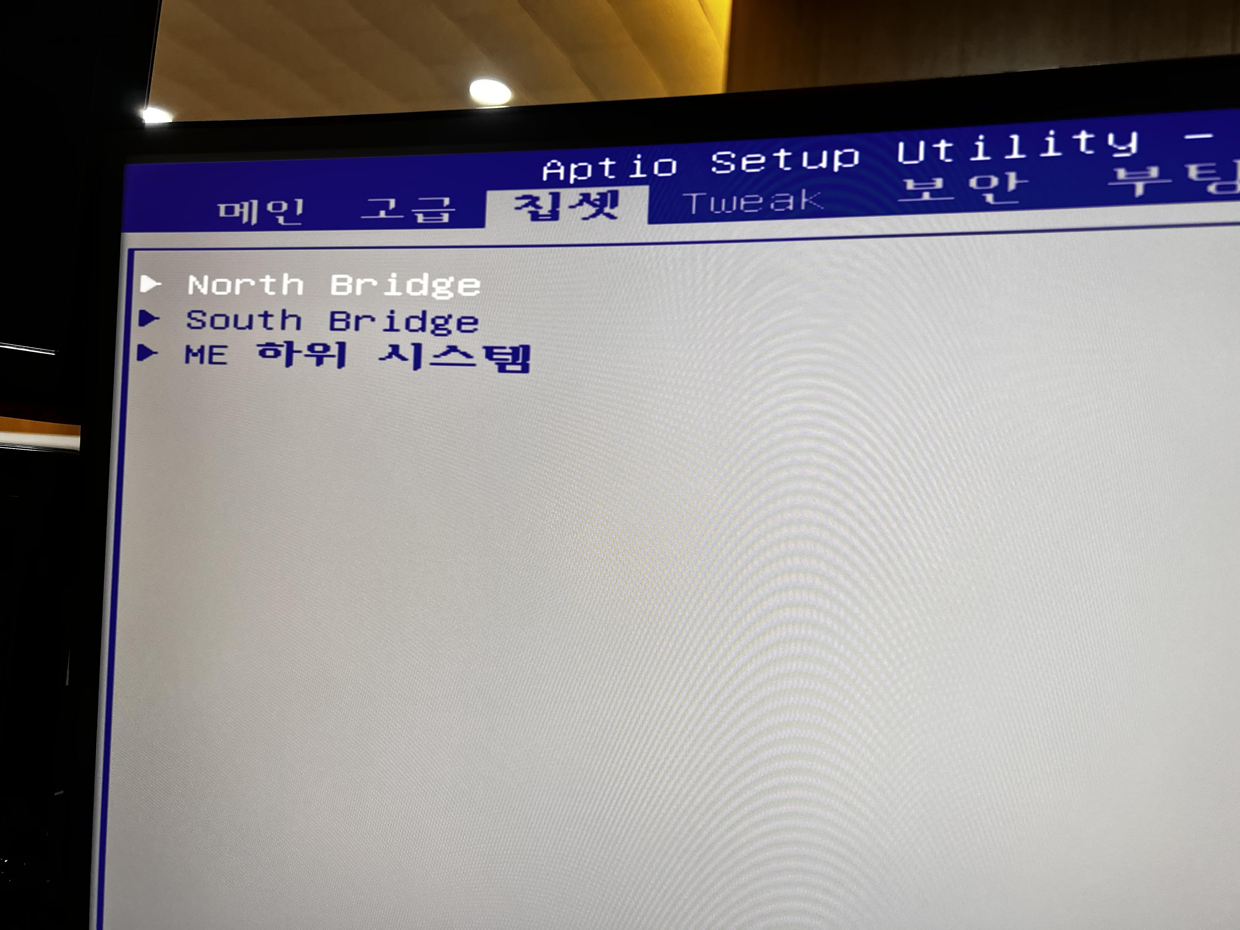 2.상단메뉴중에 '칩셋 - North Bridge' 선택