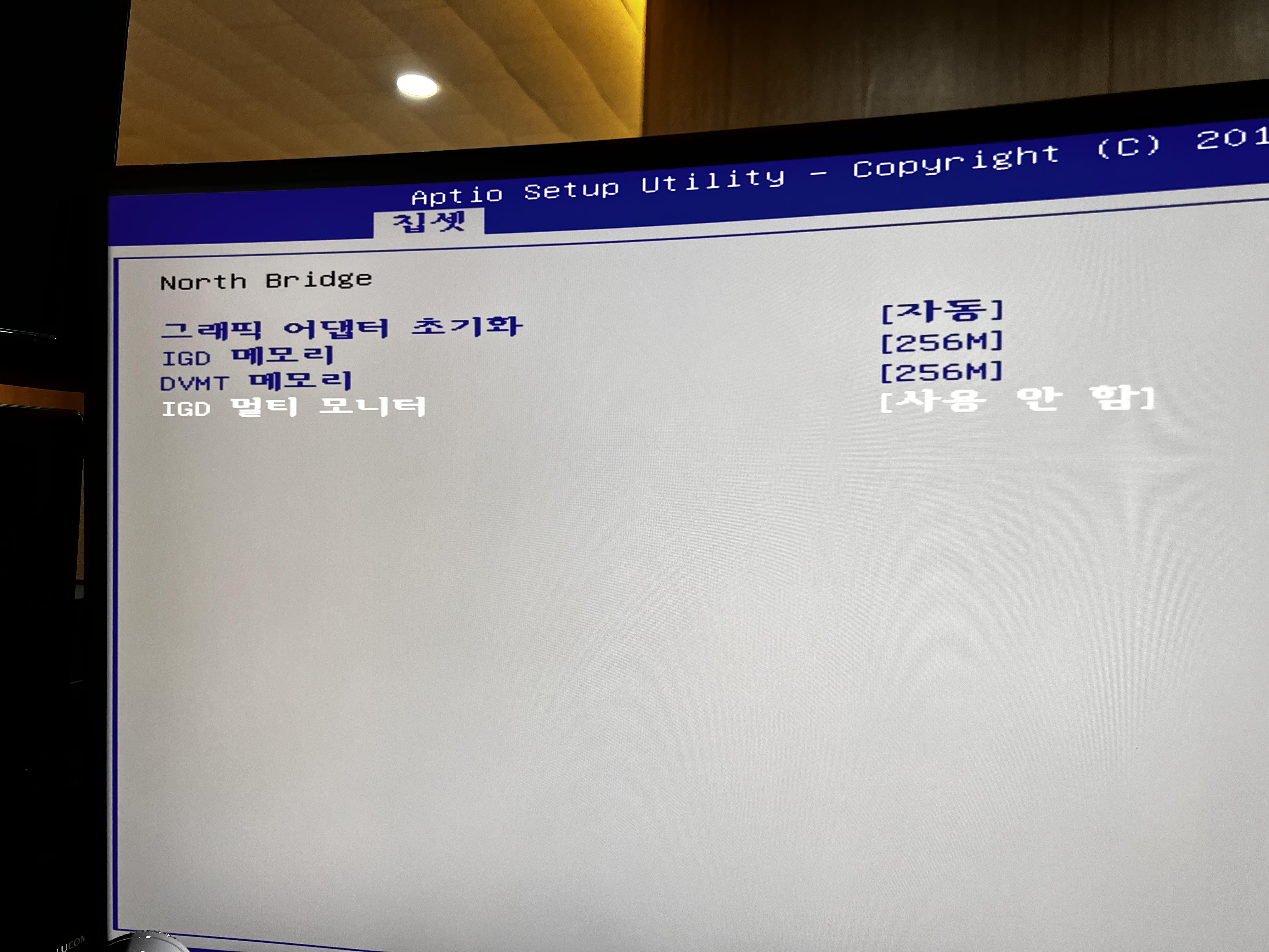 3.칩셋 - North Bridge - IGD 멀티 모니터 에서 '사용안함' 으로 설정되어 있습니다.