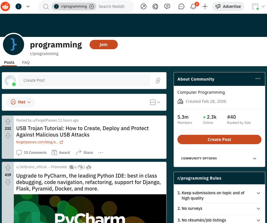 공식 홈페이지 : https://www.reddit.com/r/programming