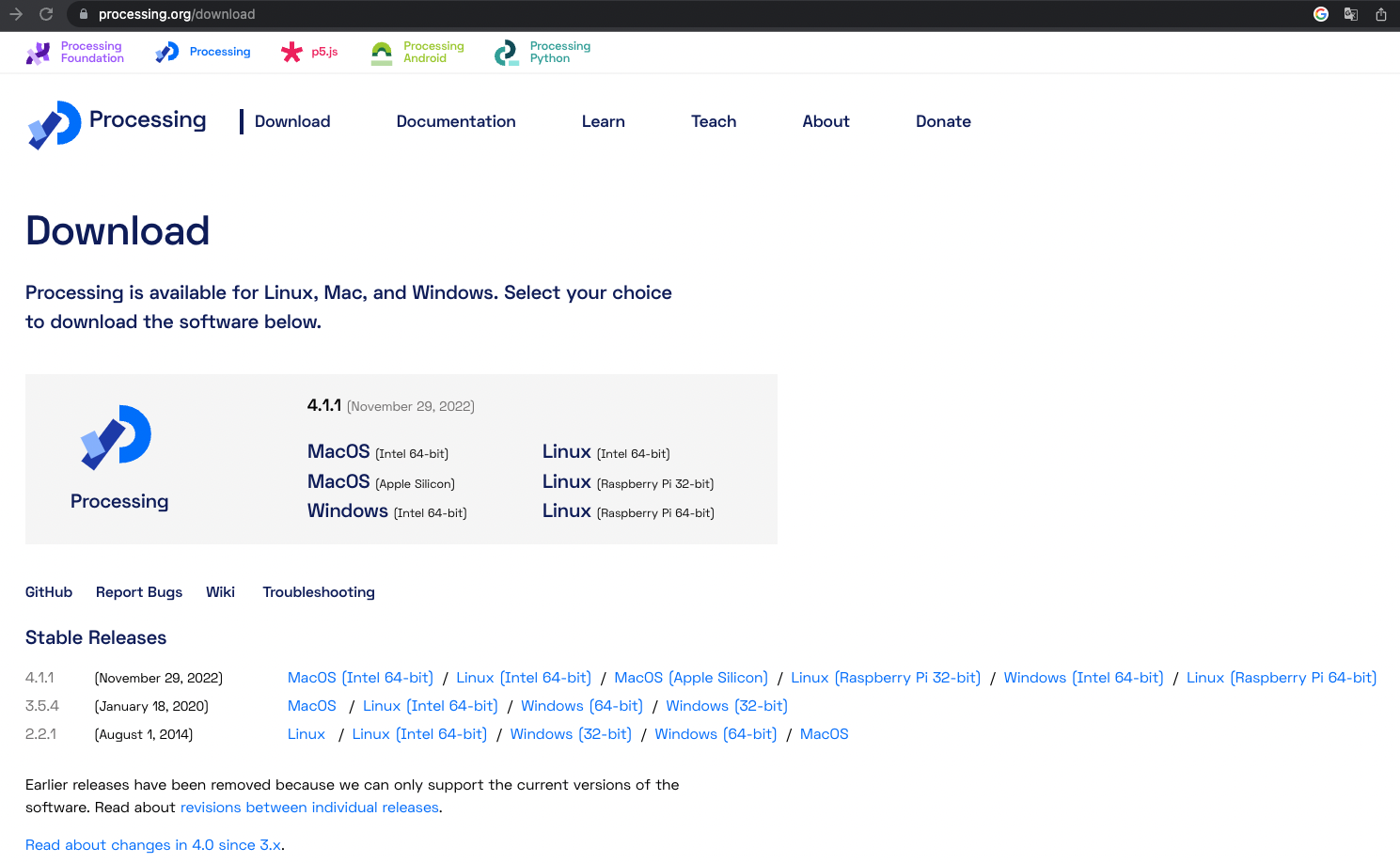 Processing is available for Linux, Mac, and Windows. Select your choice to download the software below.