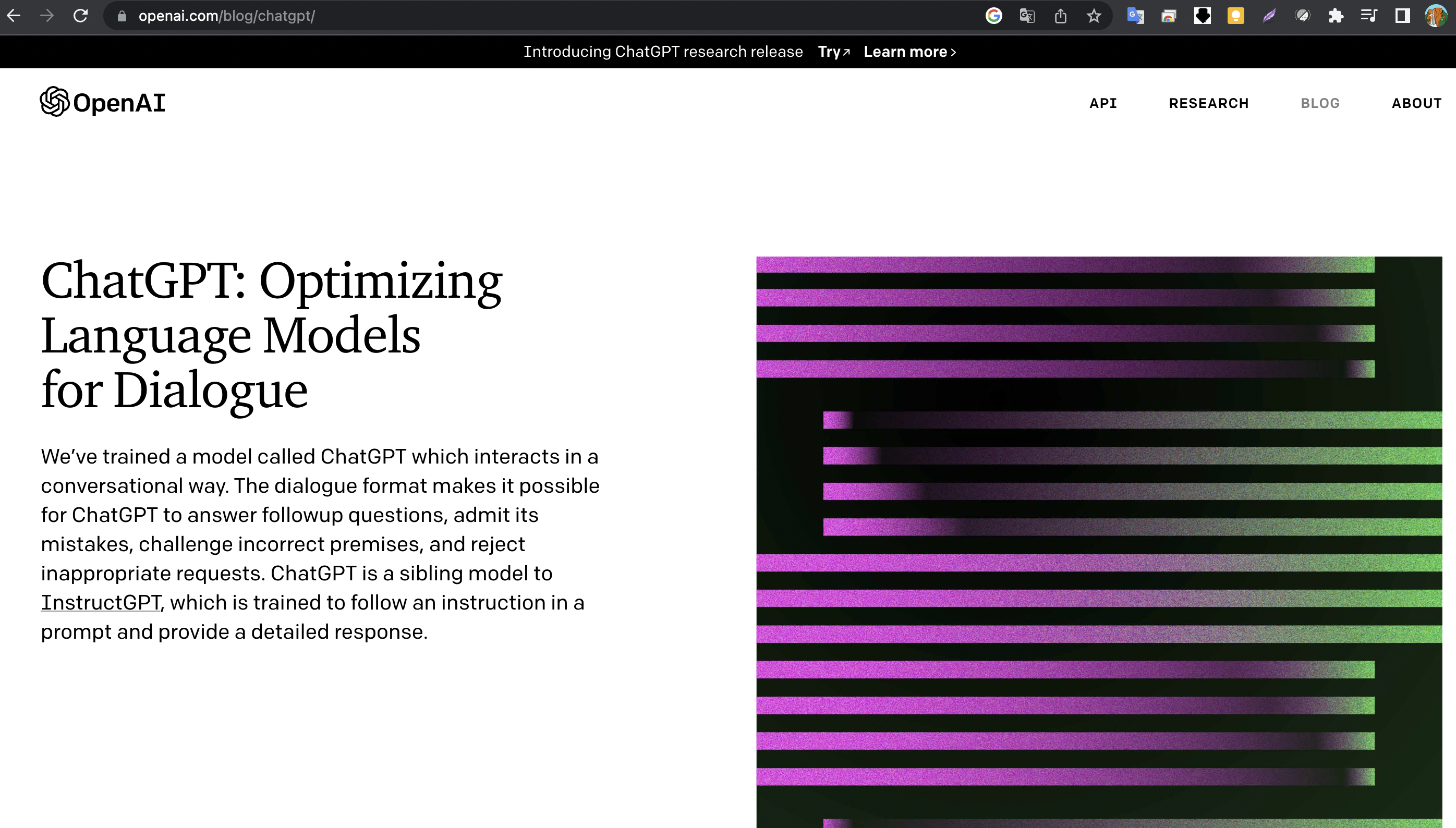 그리고 요즘 핫하다는 ChatGPT(https://openai.com/blog/chatgpt/)