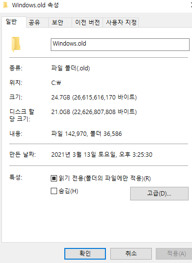 윈도우10 Windows.old 폴더 정상적인 삭제 및 강제 삭제 방법