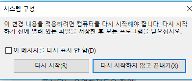 5. 확인버튼을 클릭한 후 PC를 재시작하여 증상을 확인합니다